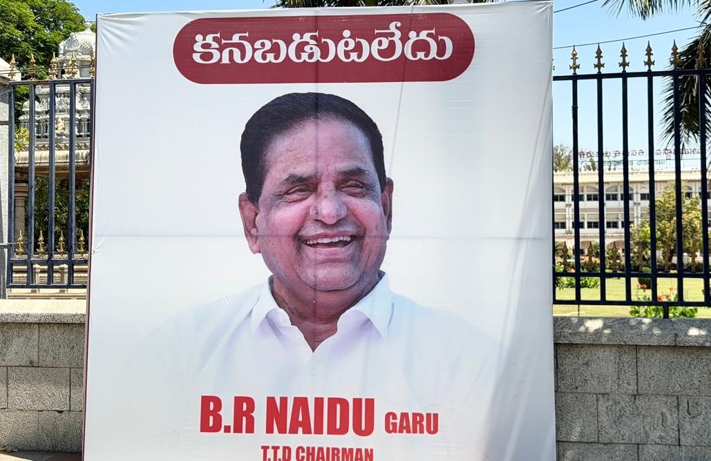టిటిడి ఛైర్మన్ బిఆర్ నాయుడు కనిపించడం లేదు ...! తిరుపతిలో టీటీడీ పరిపాలన భవనం ఎదుట వెలసిని ఫ్లెక్సీలు ...