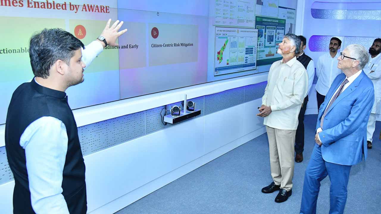 ఎపీకి చేరుకున్న బిల్ గేట్స్ .. విమానాశ్రయంలో మంత్రి లోకేశ్, ఇతర మంత్రుల ఘన స్వాగతం ... అమరావతిలో ఘన స్వాగతం పలికిన సిఎం చంద్రబాబు, డిప్యూటి సిఎం పవన్... ఎపీలో విద్య, వైద్య, వ్యవసాయ రంగాల్లో సహకారంపై చర్చ.. ఆర్టీజీఎస్ కేంద్రం, వ్యవసాయ క్షేత్రాన్ని సందర