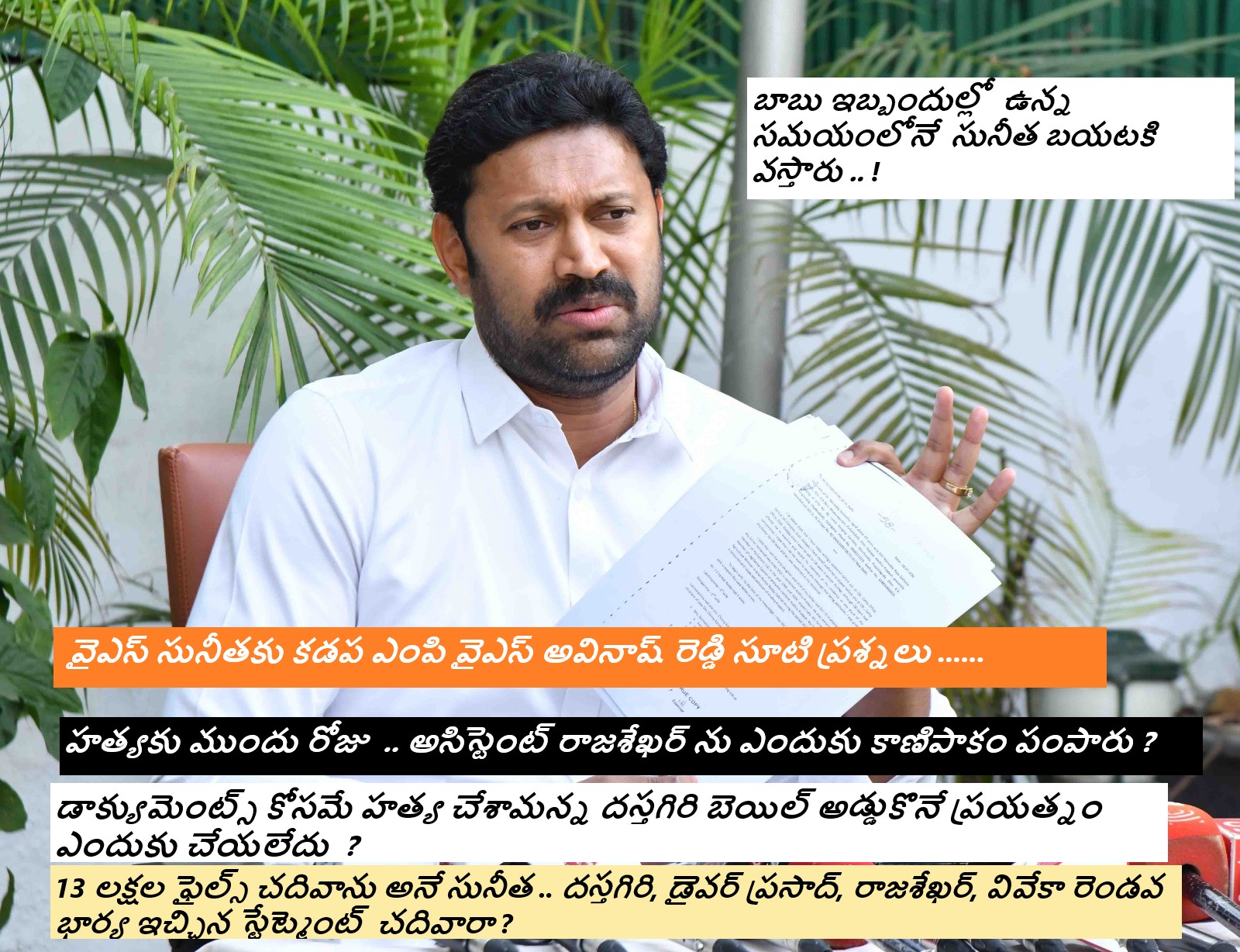 వివేకా హత్య కేసులో... వైఎస్ సునీతకు కడప ఎంపీ అవినాష్ రెడ్డి ప్రశ్నలు ... !